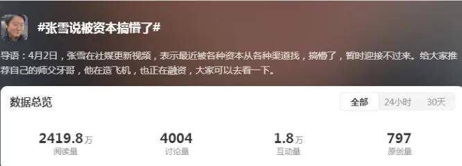 直到这日,小柴数了下和张雪合联的热搜和热搜上升榜,依旧有七八条和张雪合联的话题。